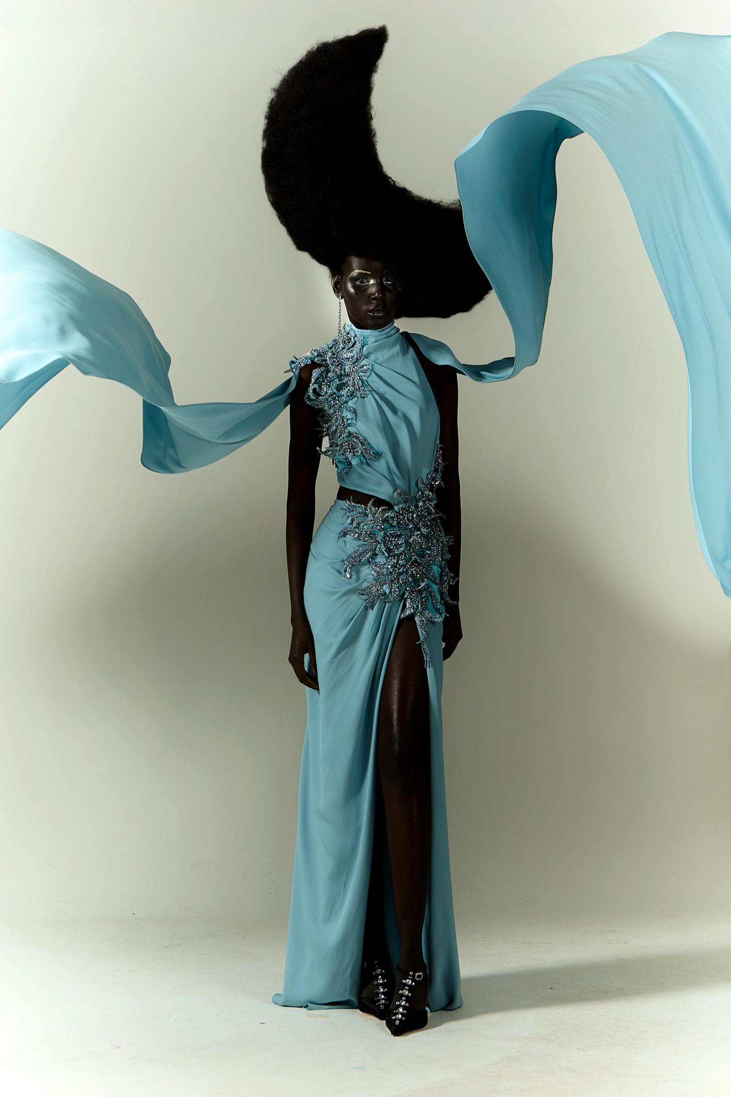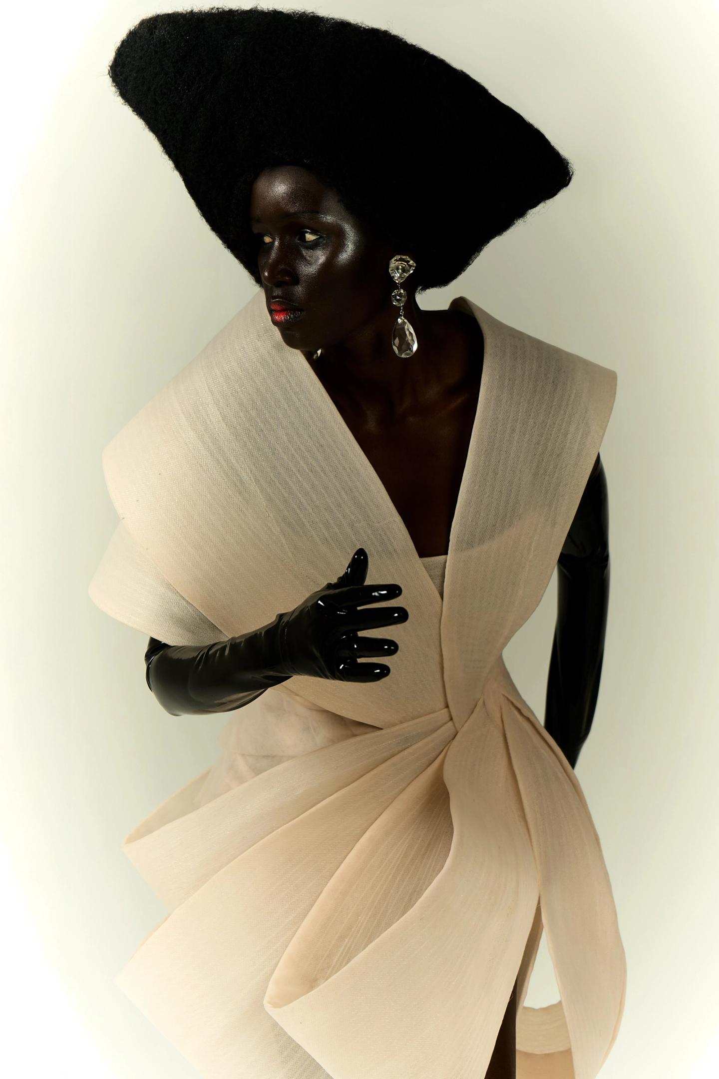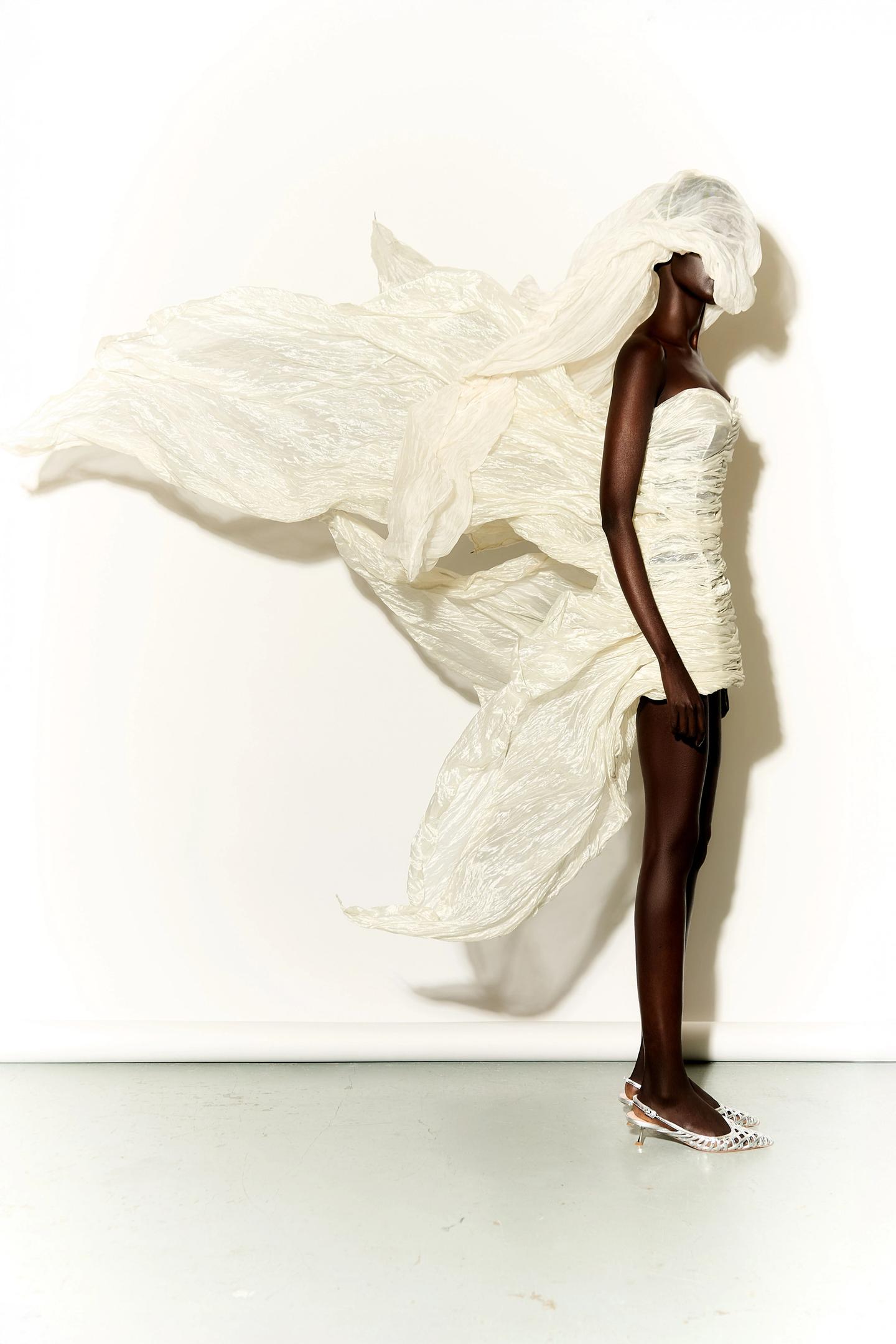 The “New Couture Series” reimagines haute couture’s sculptural form through minimalist, dreamlike imagery inspired by 1940s Vogue portraits, for Rain Magazine.